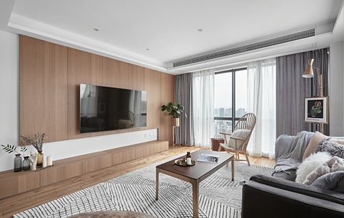 走進客餐廳后目光就被原木色吸引,以白色和原木色為主調的客餐廳,搭配造型線條干練的家具,再以精簡的軟裝點綴。客餐廳一體的設計,落地窗與采光融合的非常好。...
