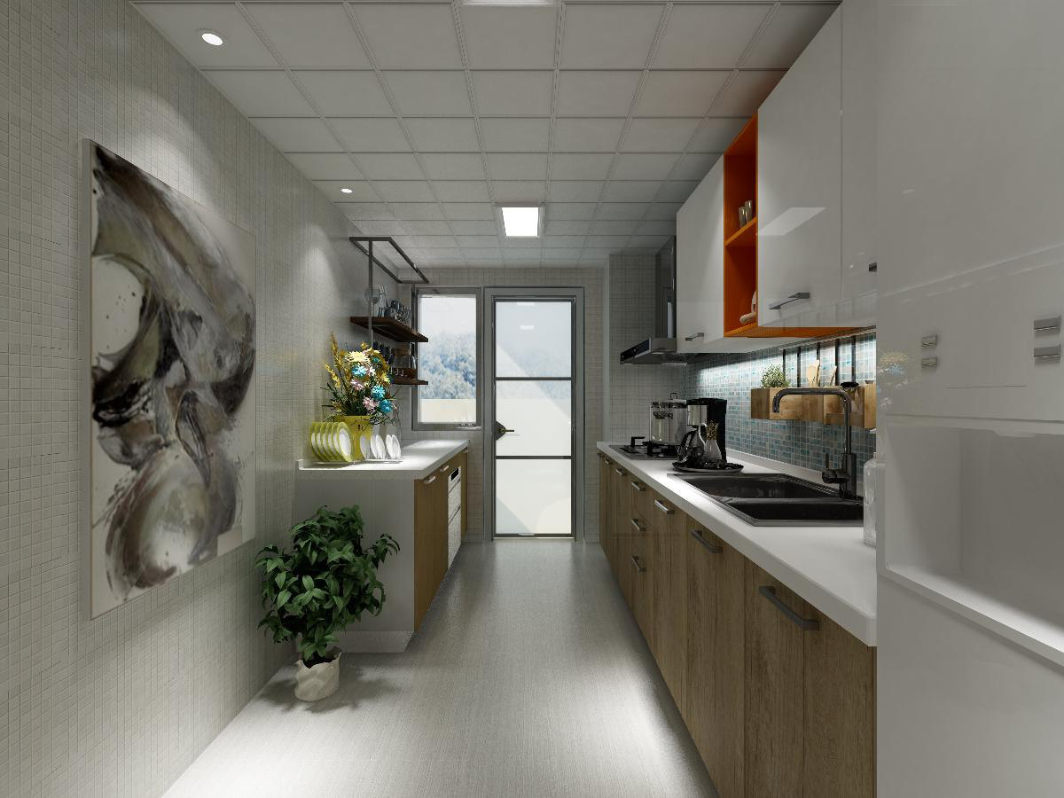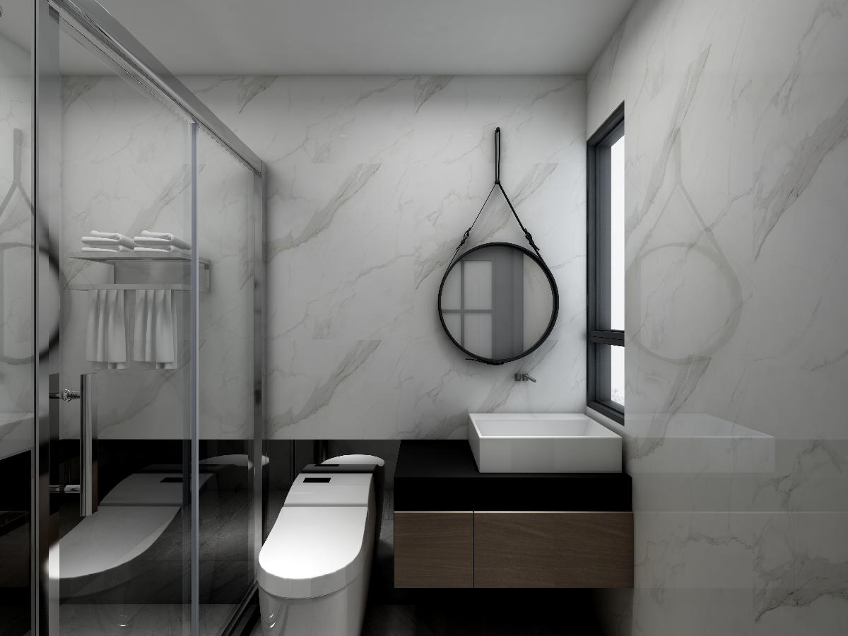 入戶玄關設計了一個多功能展示鞋柜,餐廳區和客廳相連,衛生間干濕分區,其余空間分別是廚房,陽臺和主臥,主臥隔壁的是多功能書房,同時可以作為客房與未來的兒童房。