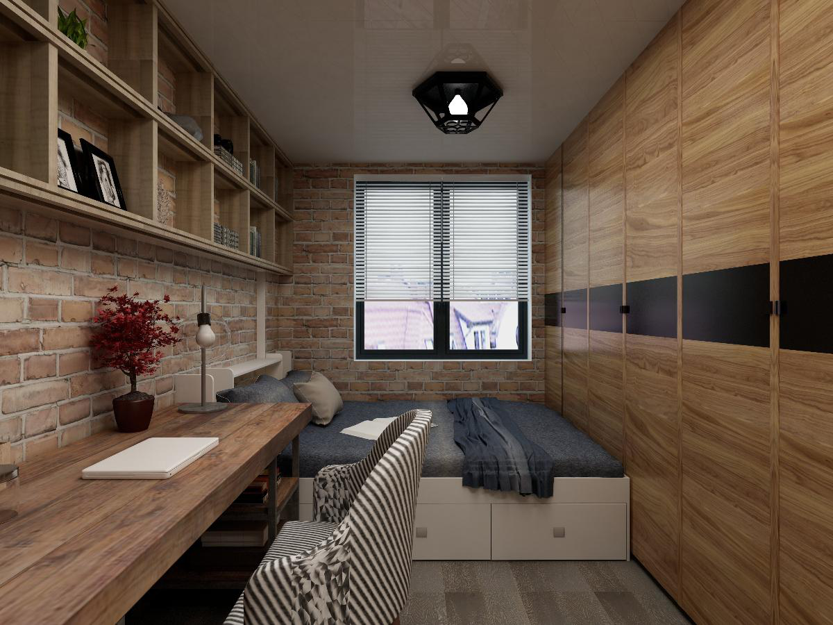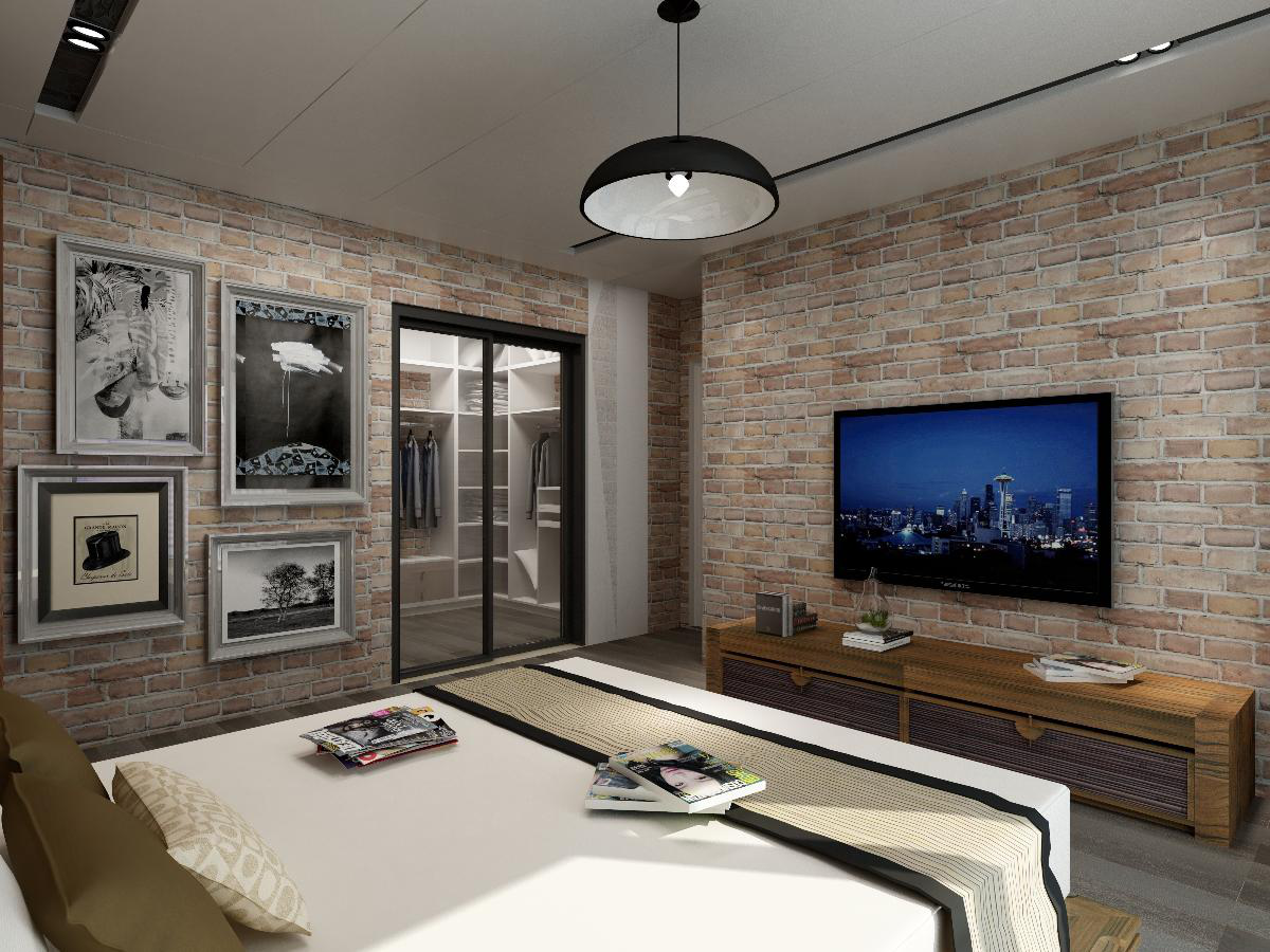 本案例是現代工業風,粗糙的磚墻、灰暗的水泥、和溫馨的原木飾面,這些看似老舊的既有元素,都成了空間中的獨特魅力。